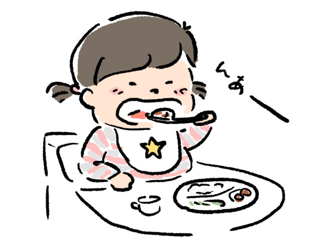 「ゆっくり嚙んで食べるんだよ」