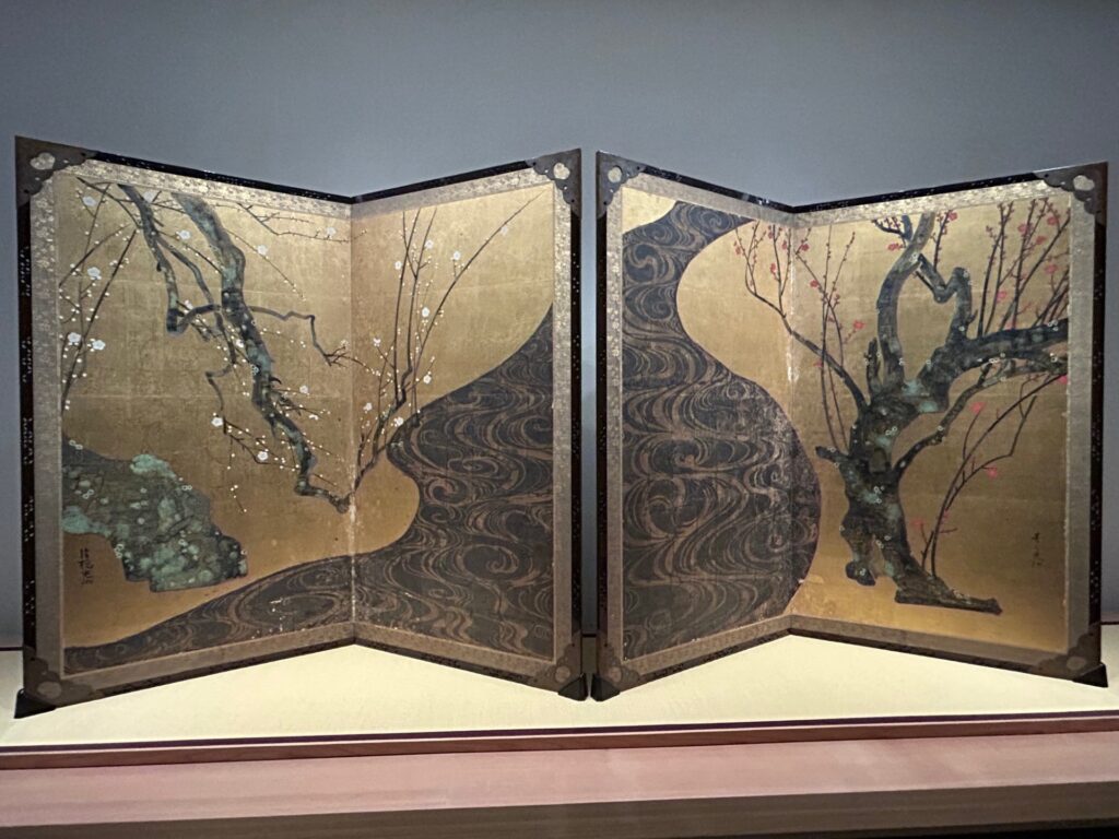 国宝の尾形光琳作「紅白梅図屏風(こうはくばいずびょうぶ)」が公開されていました。