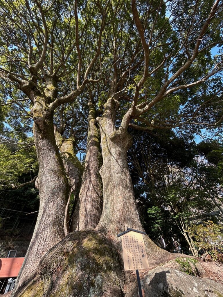 切り株からひこばえが出て、三本の樟になったといわれます。