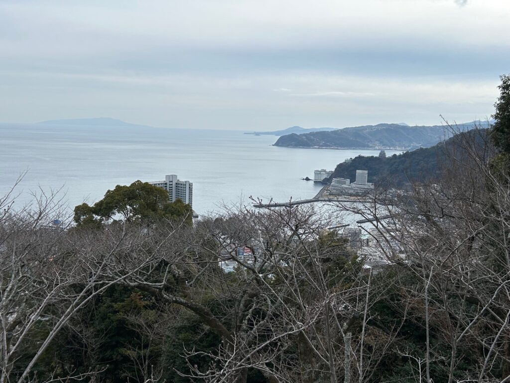 建物の外に出ると、広い庭園になっていて、眼下に熱海市街と相模湾の絶景が広がります。
