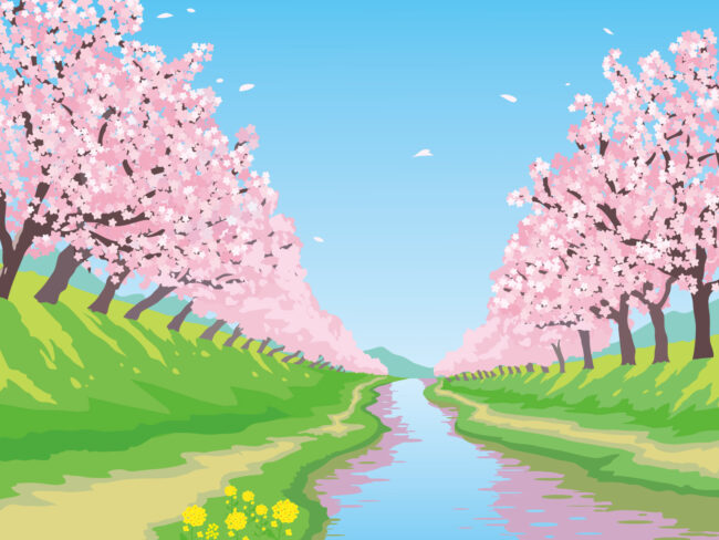 青空、桜、菜の花とのコラボ!きれいです!