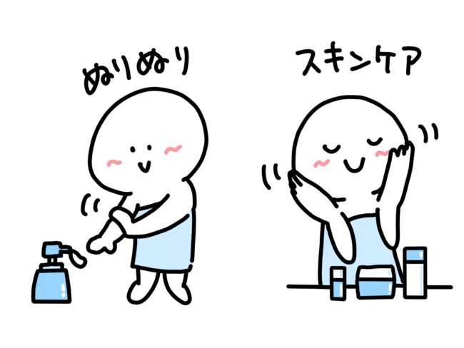 風呂上がりには、顔と足のすねに化粧水を塗ることが欠かせなくなりました。