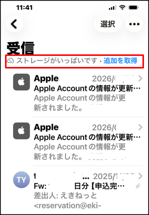 <iCloudストレージが満杯になると、メールの受信ができなくなることがあります。>