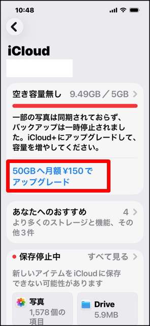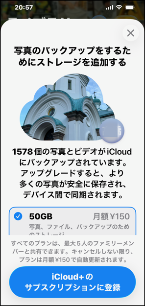 あらためてiCloudのストレージをみると、
