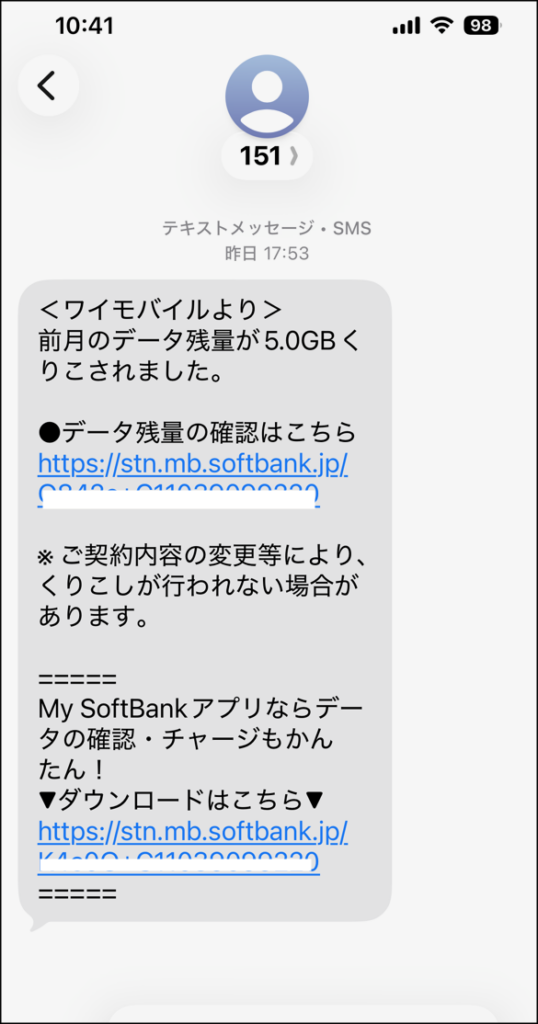 <前月のデータ残量が5.0GBくりこされました>