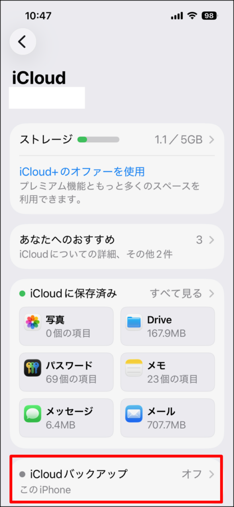 で、私はiCloudバックアップ機能をオフにしていました。