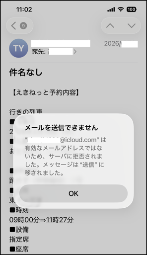 私のスマホへは、予約情報をメールで送信することができたのですが、